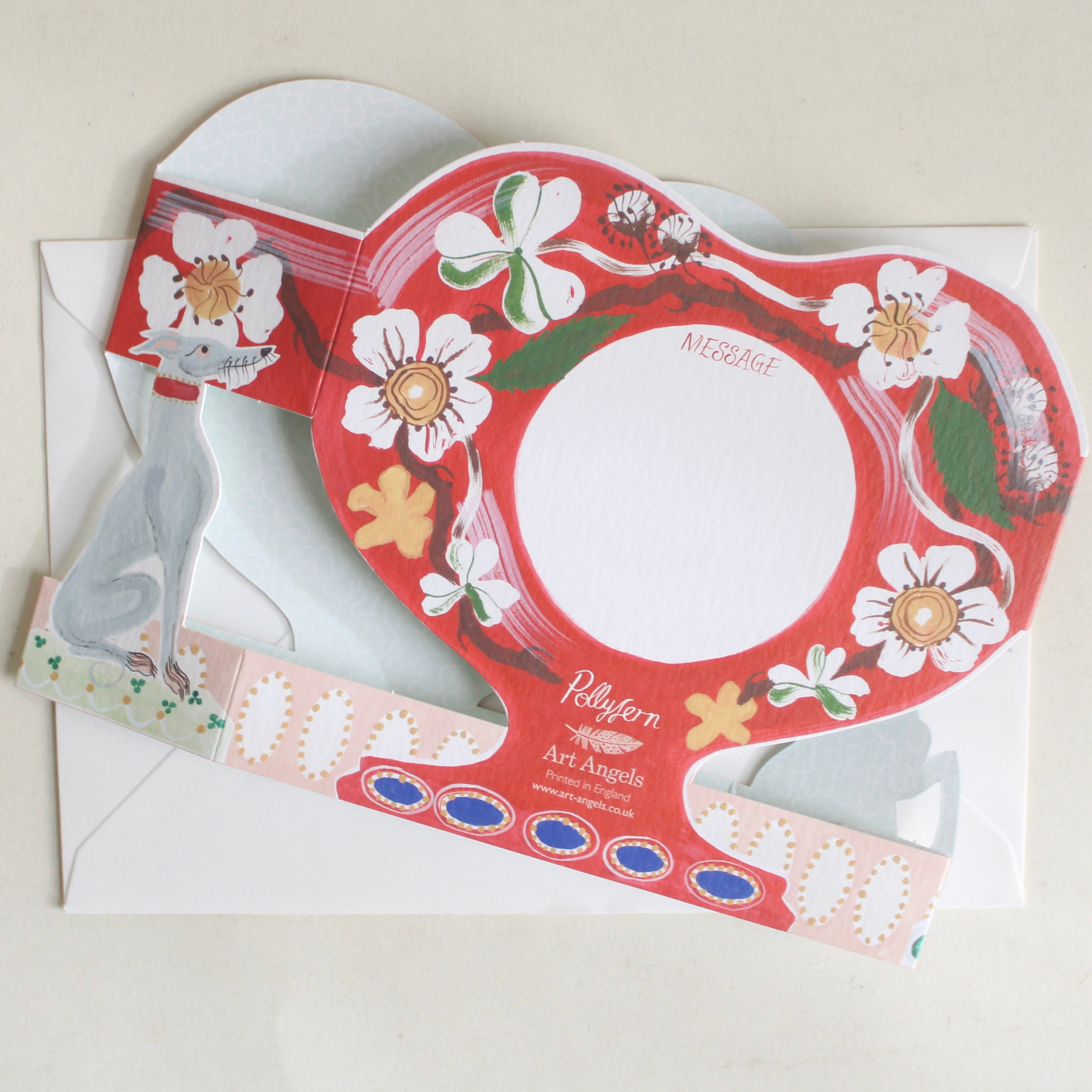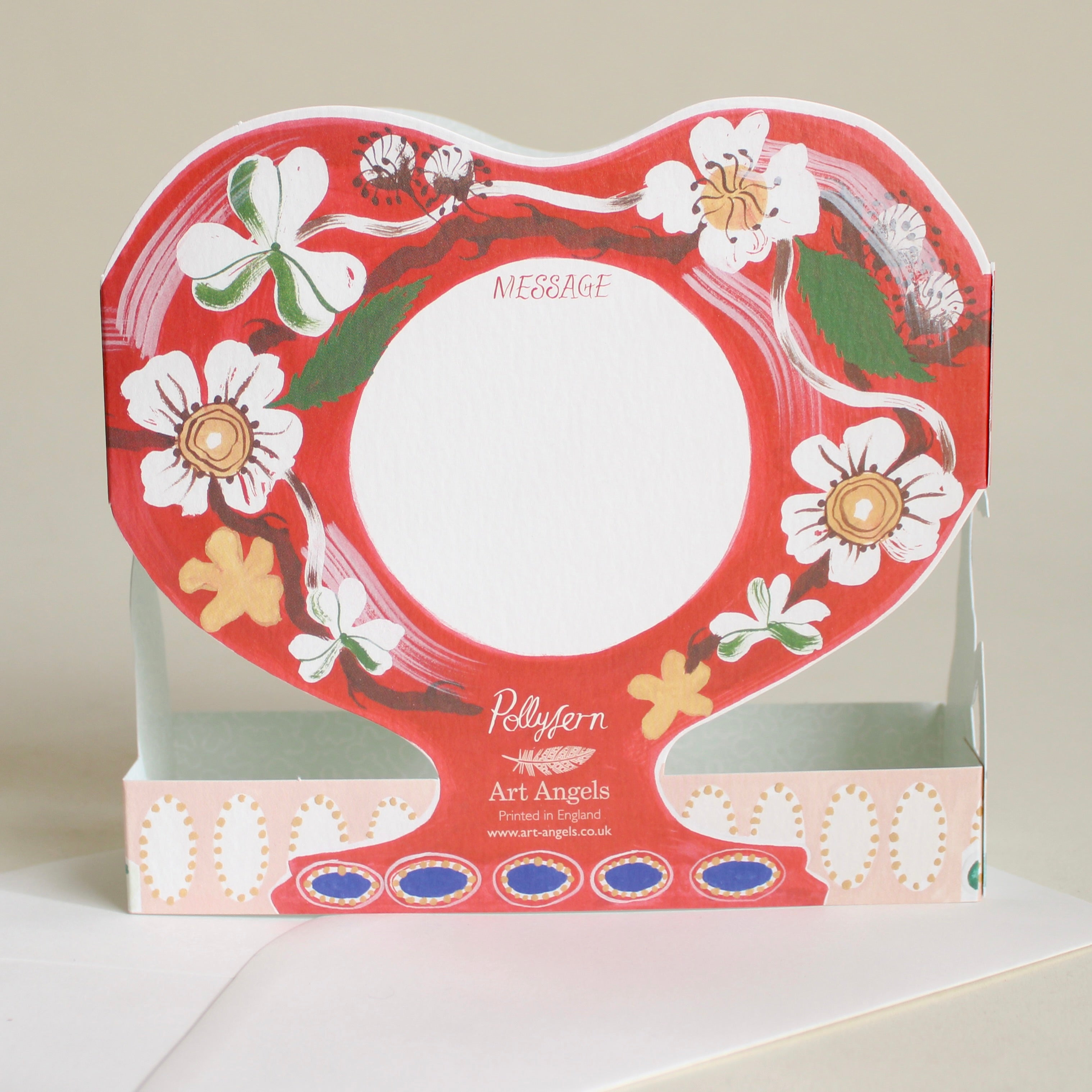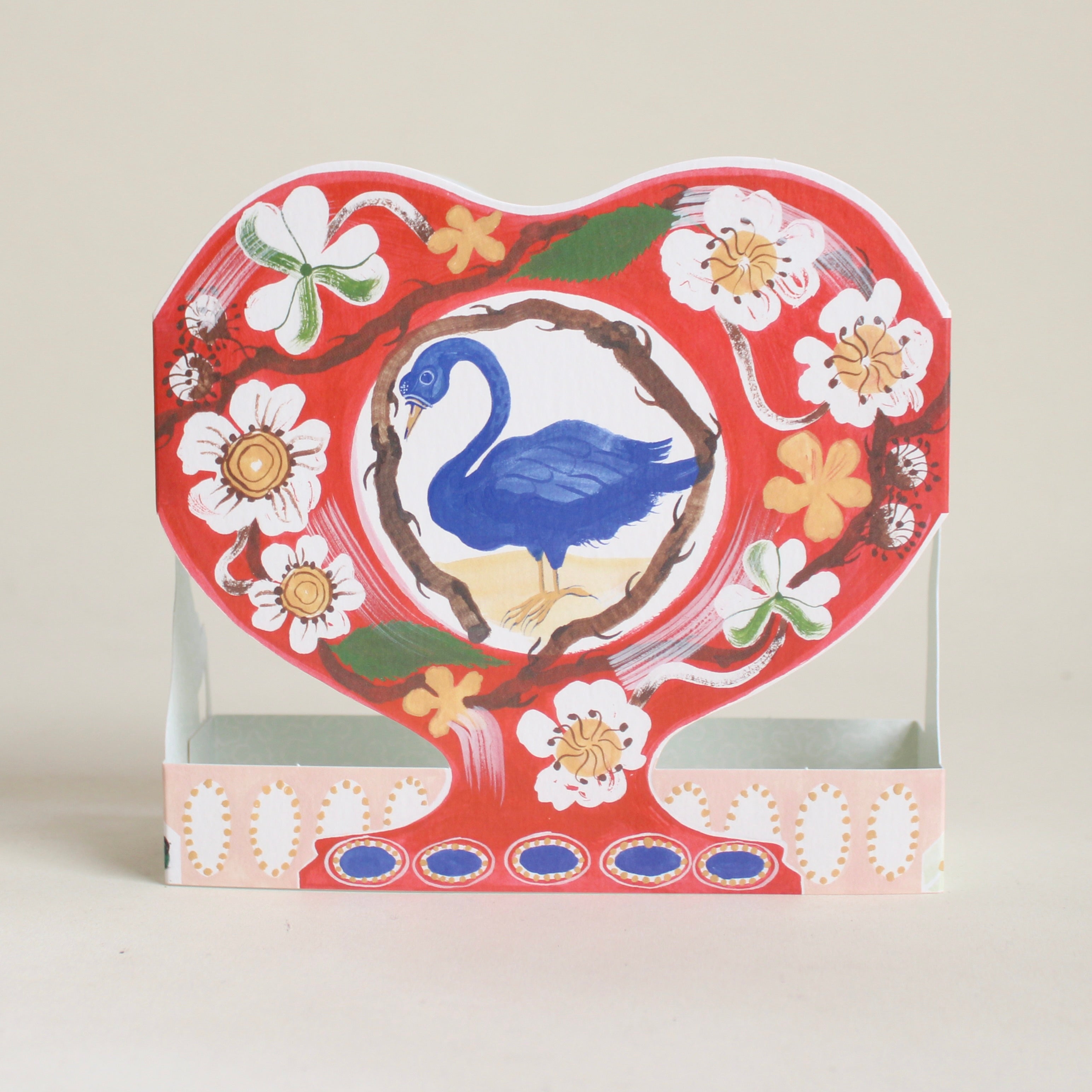 This charming pop-up card brings splendor and whimsy to festive wishes, birthday greetings, and holiday notes alike. It folds neatly for mailing, then opens into a lovely display—an artful card meant to be set out, saved, and enjoyed