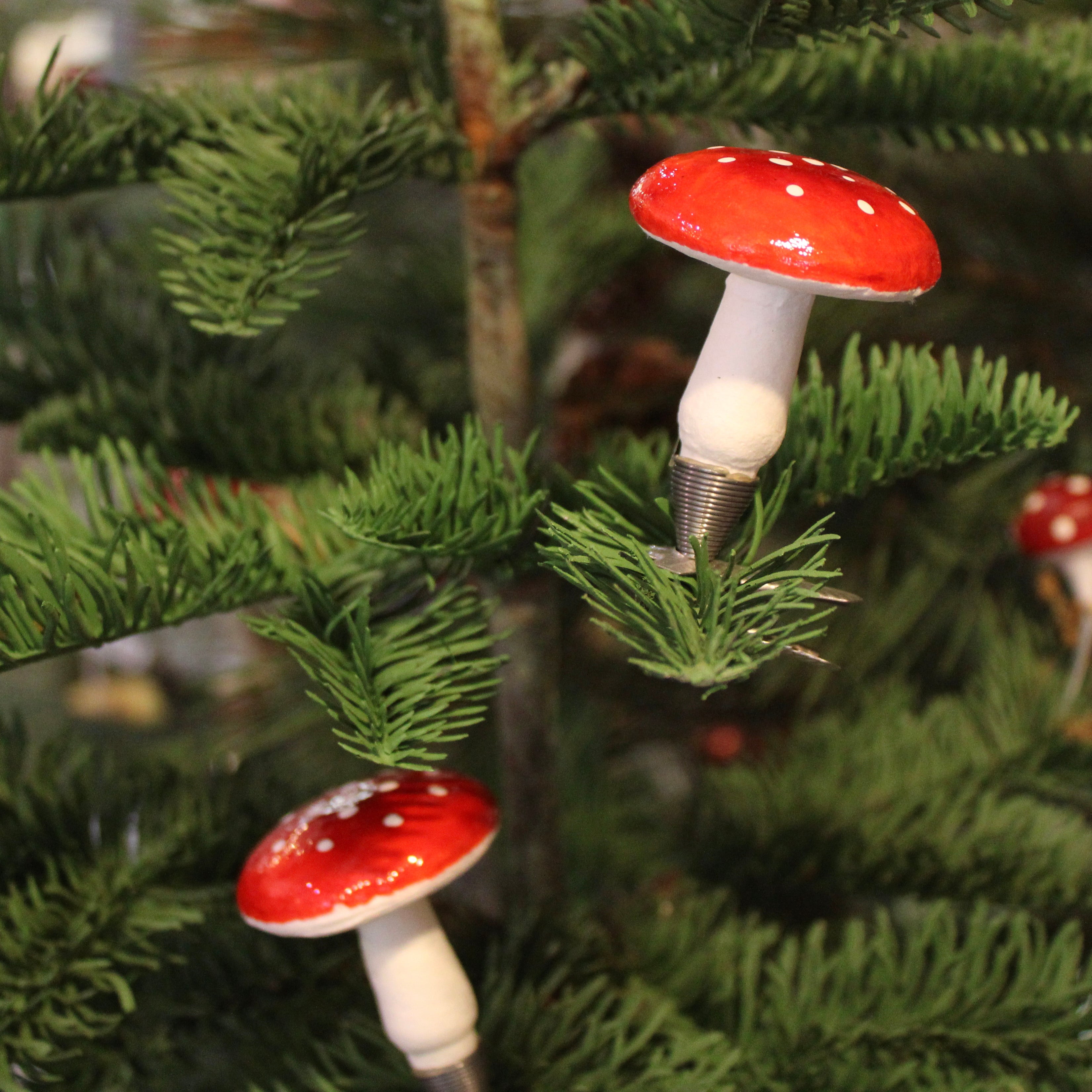 Transform your tree into a woodland wonderland with bright red forest floor mushrooms. The adhered clips make these ornaments an easy addition to any holiday tree.