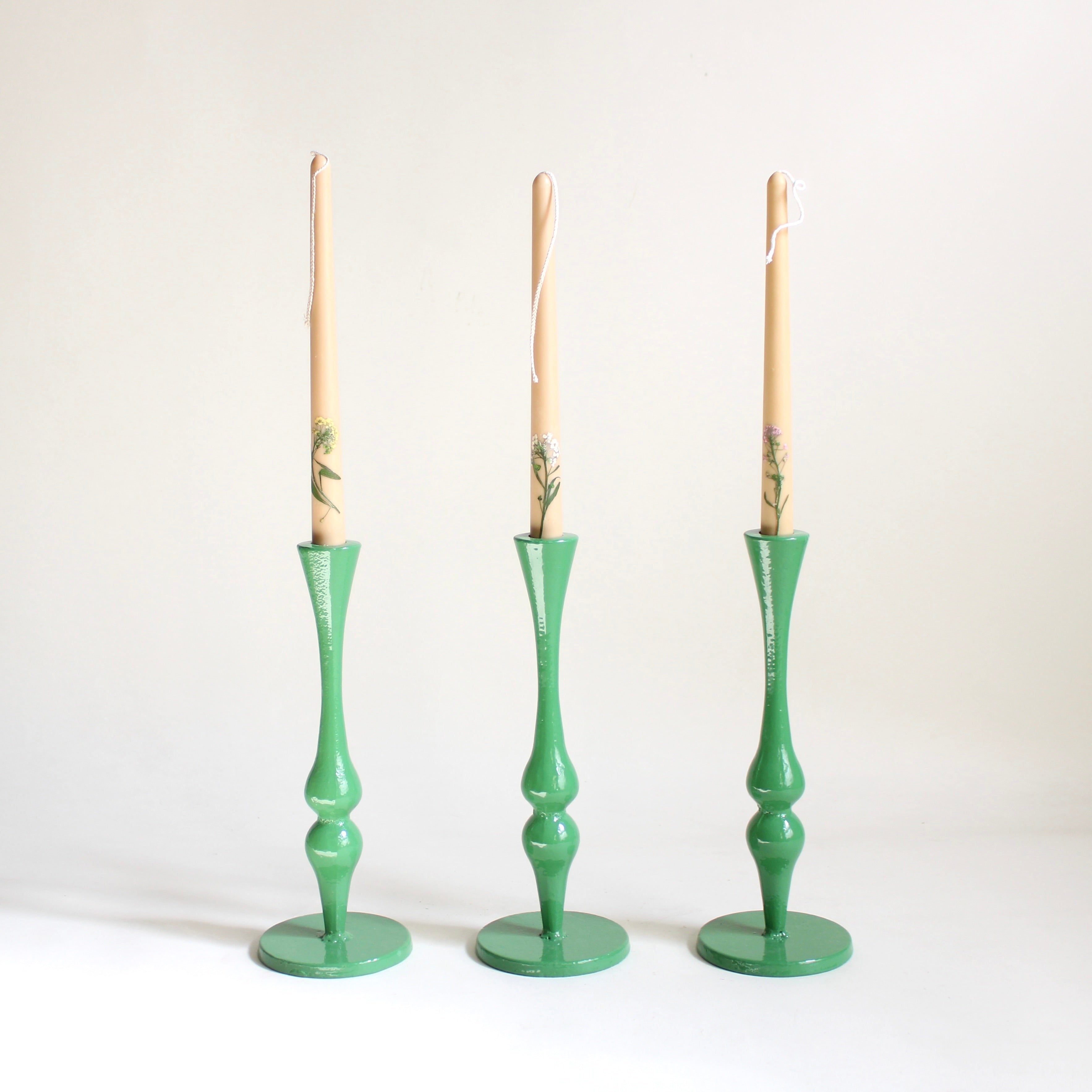 Bring a lively touch of green to the table, whether for everyday meals or special gatherings. With their classic shape, satisfying weight, and refreshing hue, these candlesticks make a beautiful statement—displayed on their own or gathered as a set.