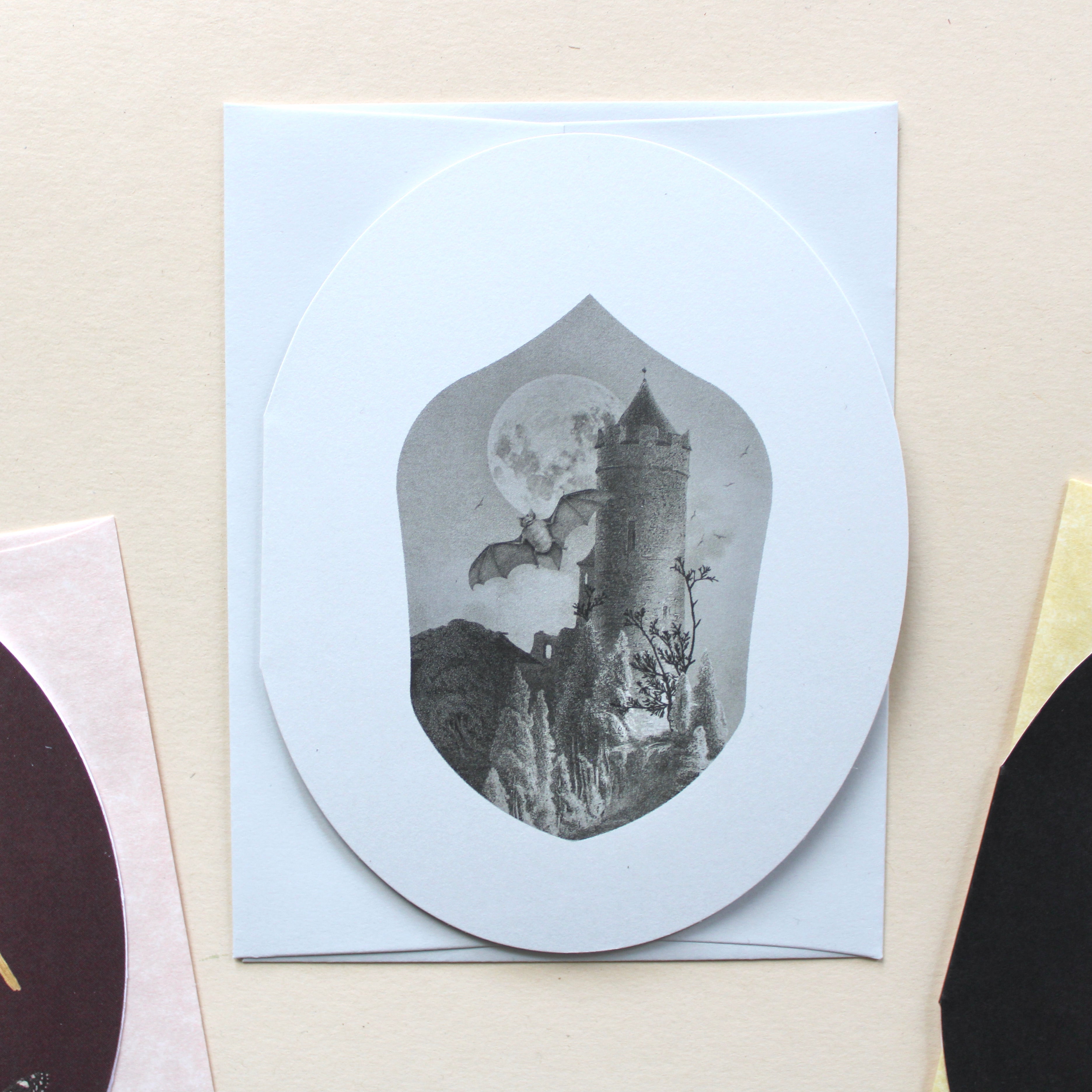 For long-distance notes or as a striking addition to a gift, this fantastical dark kingdom card leaves space inside for your own message—say exactly what you mean, your way.