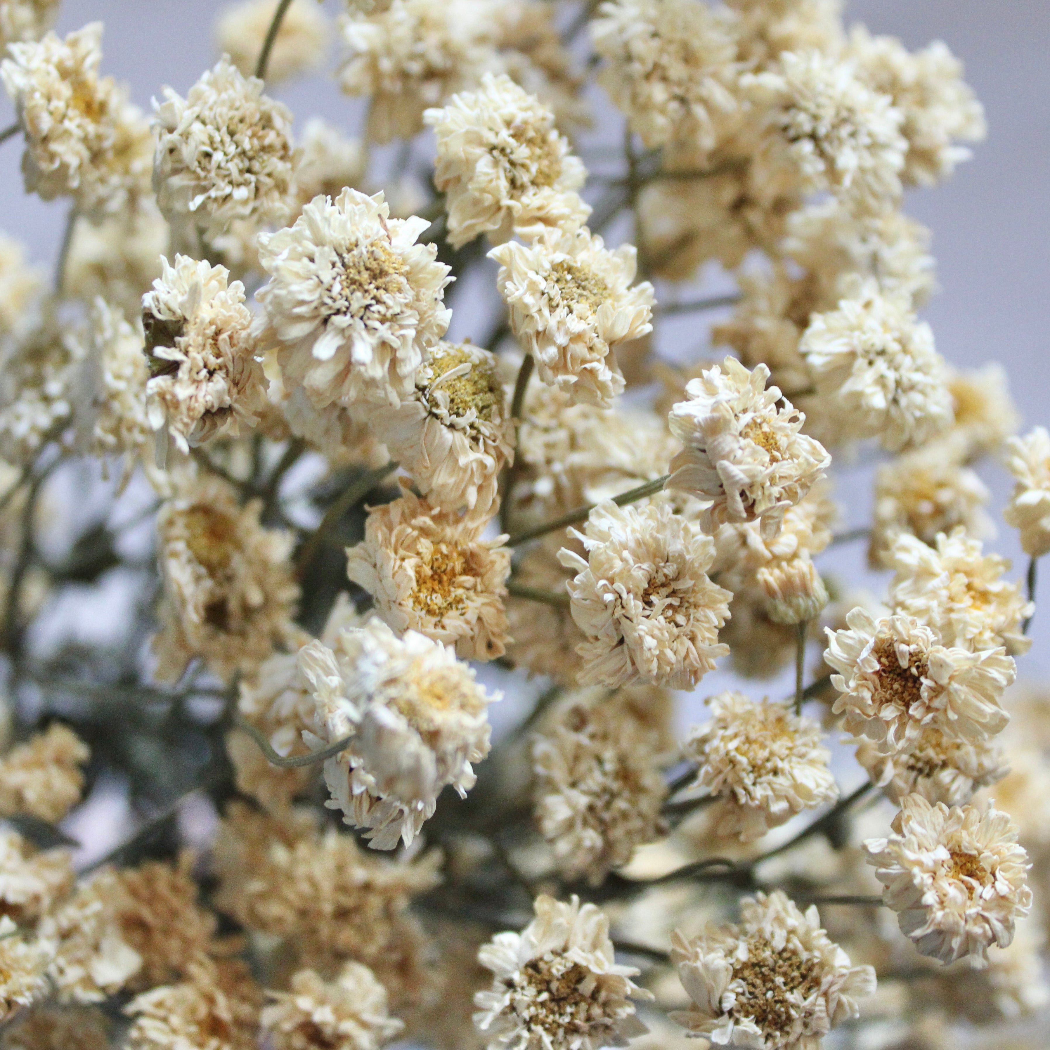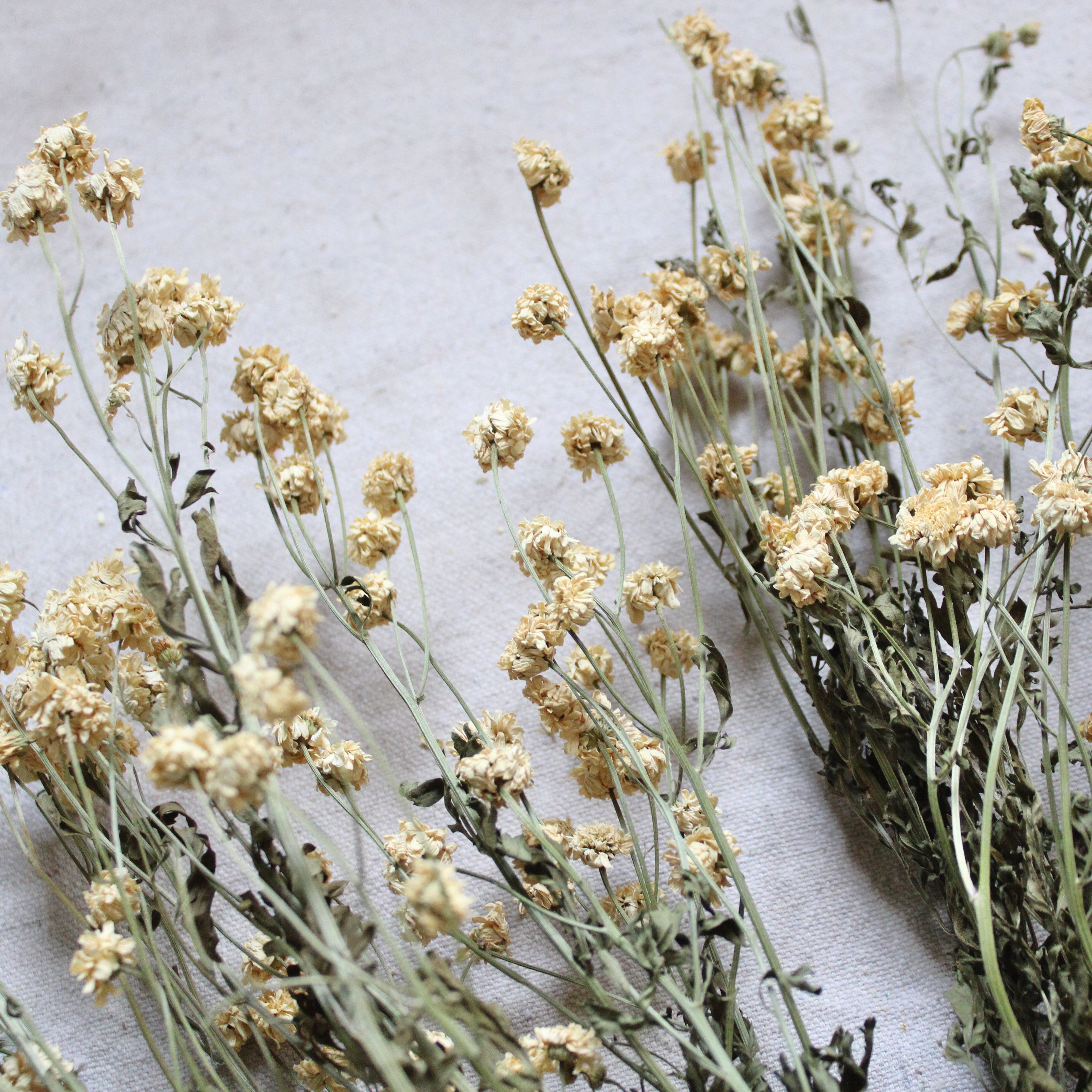 Soften and sweeten arrangements with daisy-like blooms of Feverfew. We turn to these for infusing a farmhouse feel into dried flower arrangements.