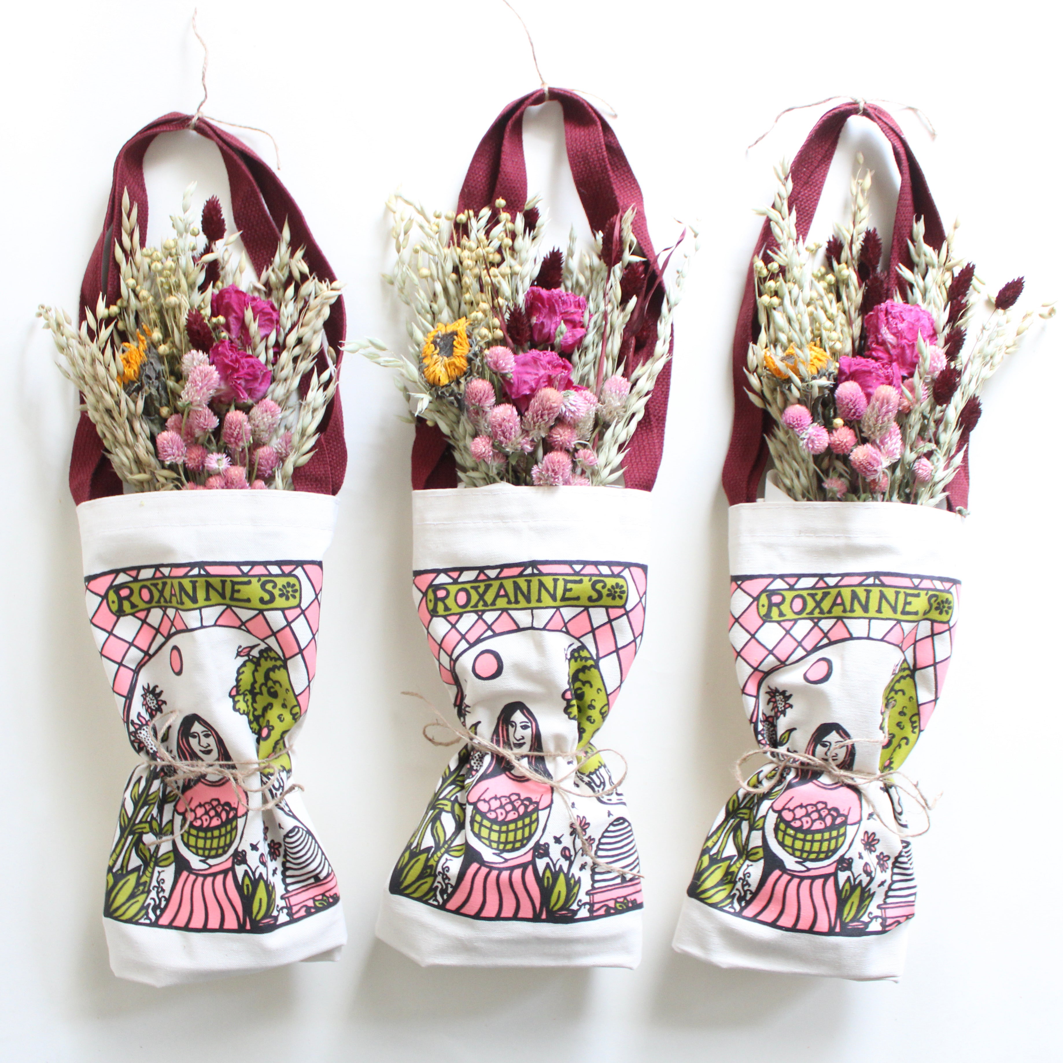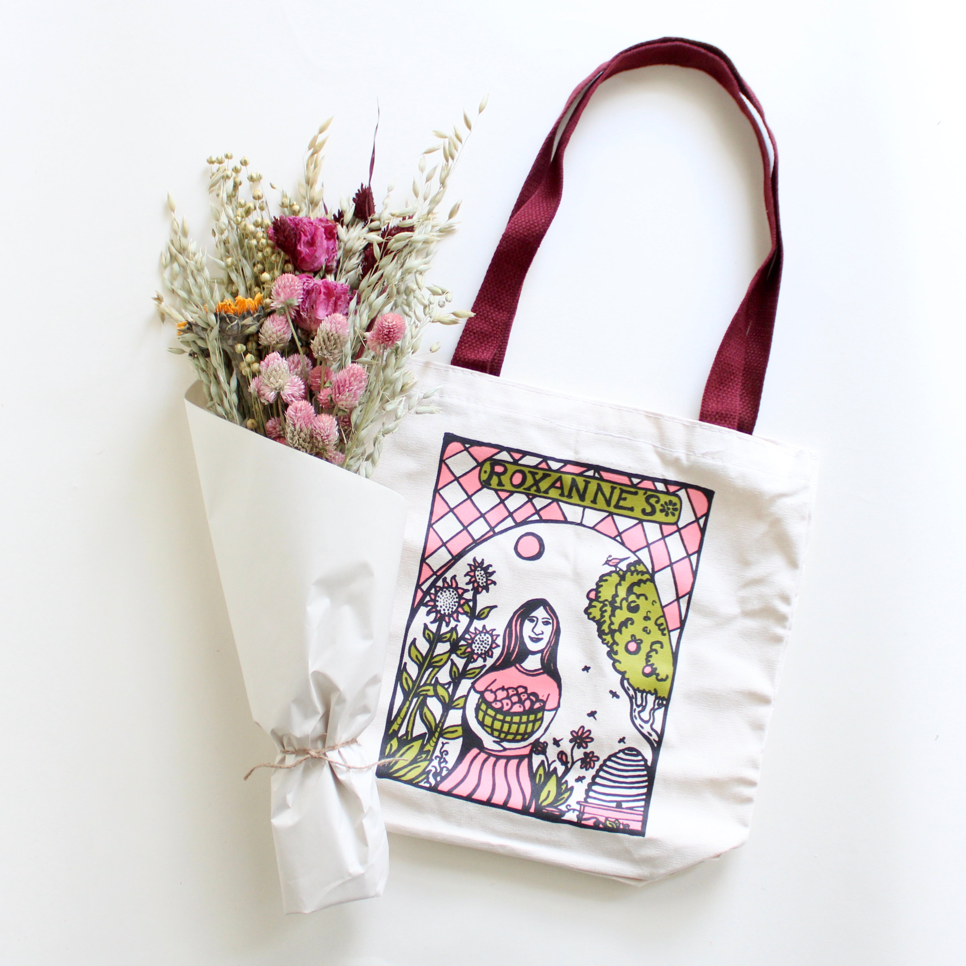 A perfect pairing! This specially designed dried bouquet was made to complement our custom tote bag beautifully. Gift it to someone special or treat yourself. The bouquet brings lasting beauty to your home, while the tote is ready to accompany you on everyday adventures—perfect for gathering blooms, books, or treasures along the way.
