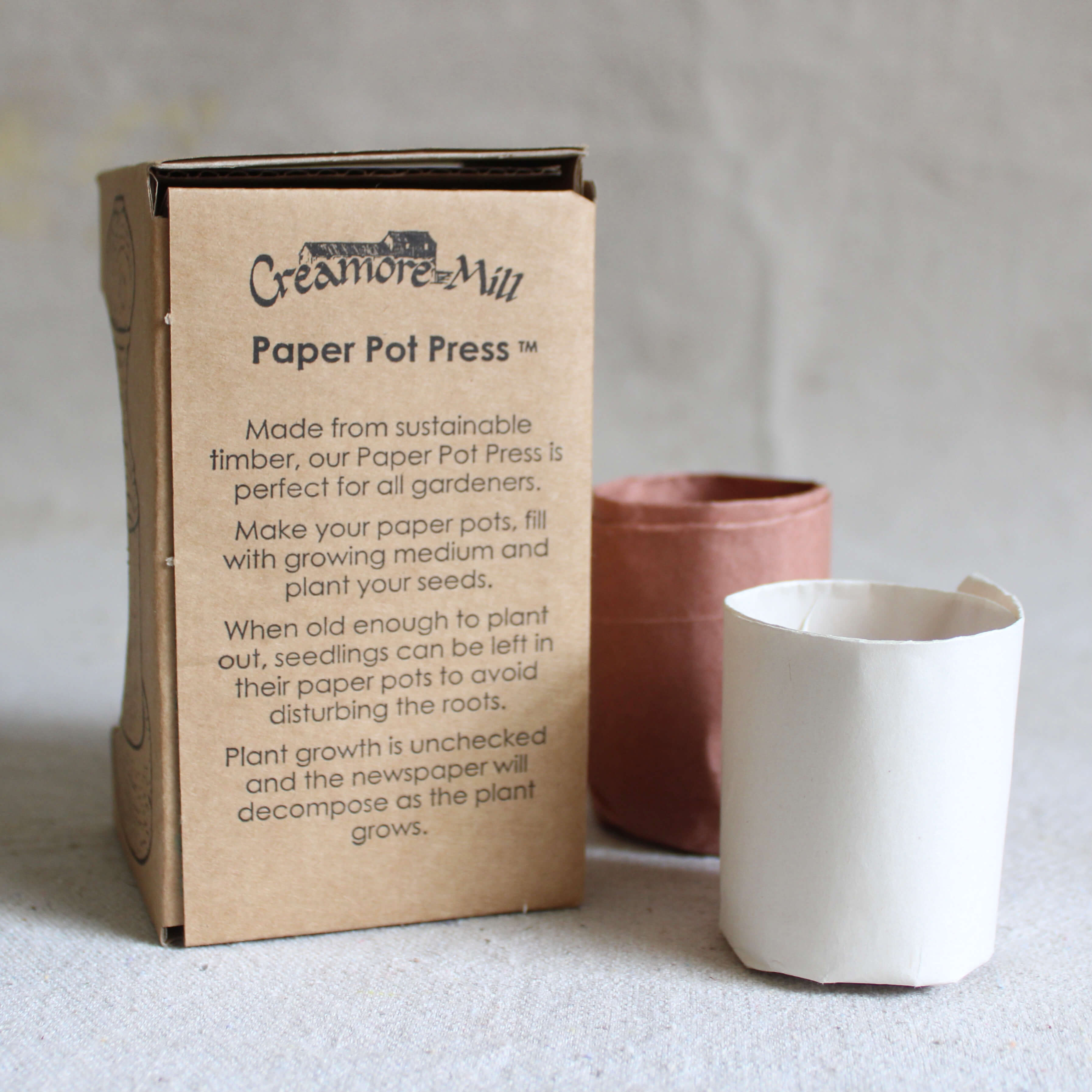 An ingenious tool for making biodegradable pots from torn newspaper. When the seedlings are mature enough, plant complete with the pot into the ground. Simple instructions are on the box.