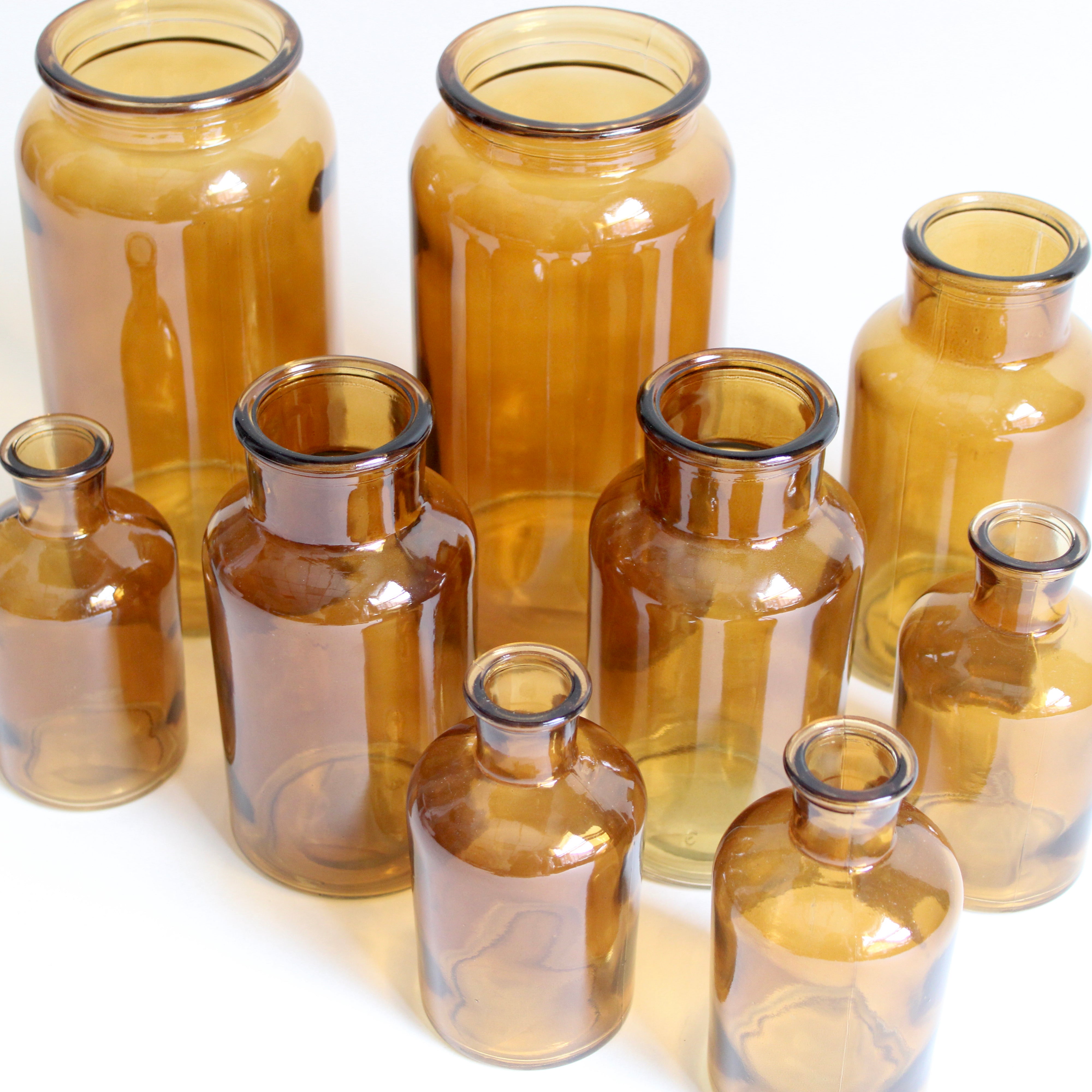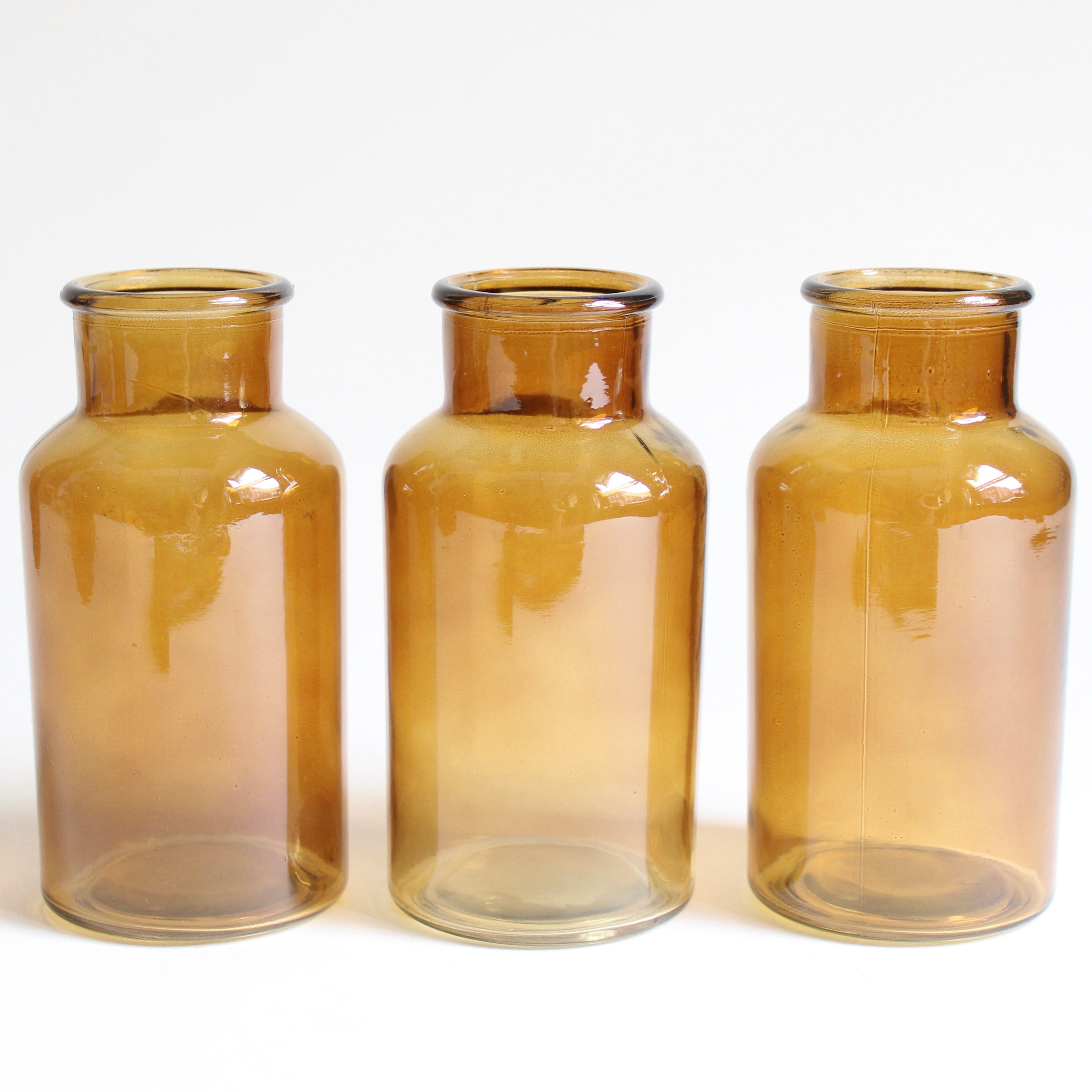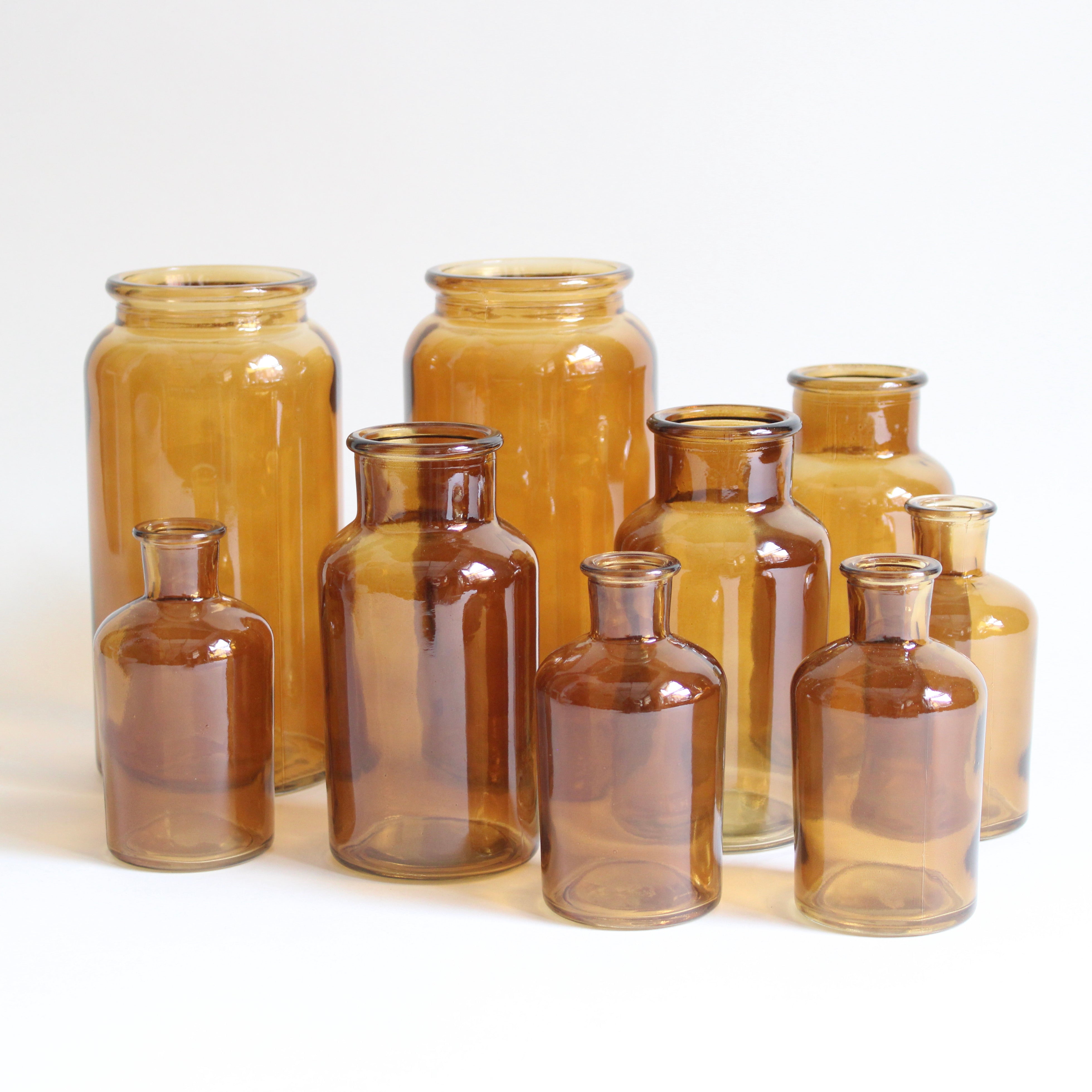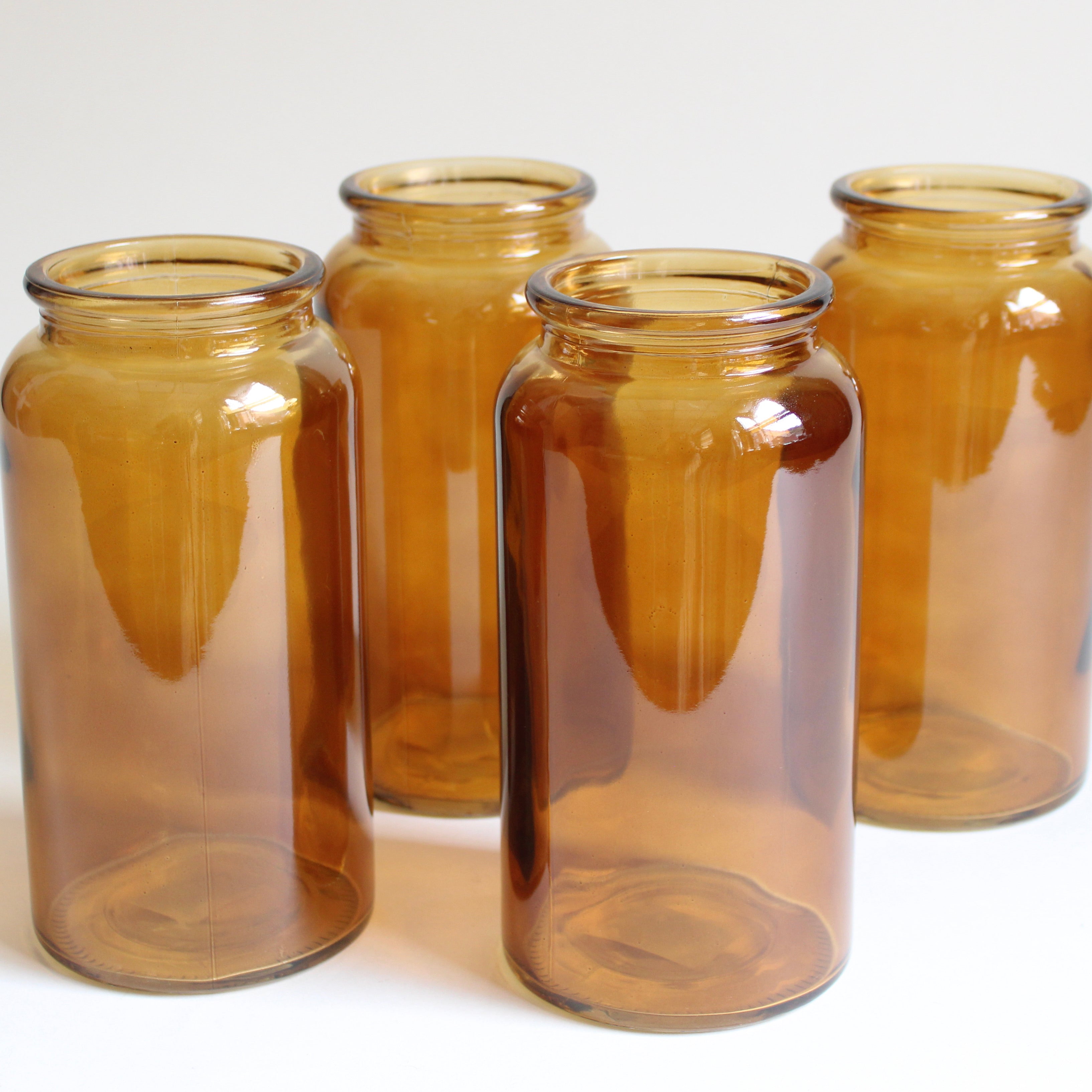 An amber-hued jar perfect for your next dried flower arrangement. Available in three sizes to suit any space—mix and match for a sprawling tablescape or display a single jar for a small burst of blooms on a shelf or side table. A simple, slightly rustic piece that brings a fresh update to your flower jar collection.