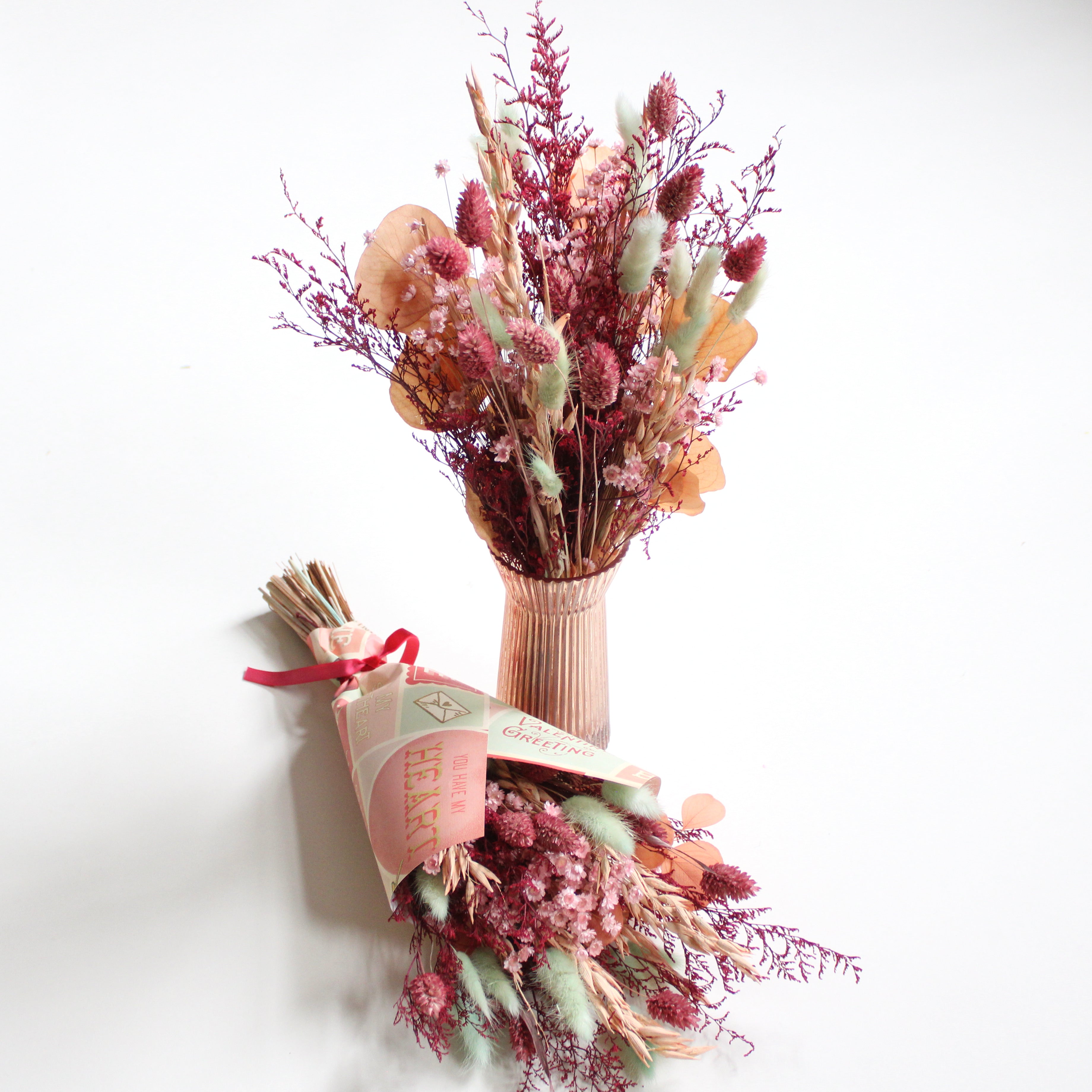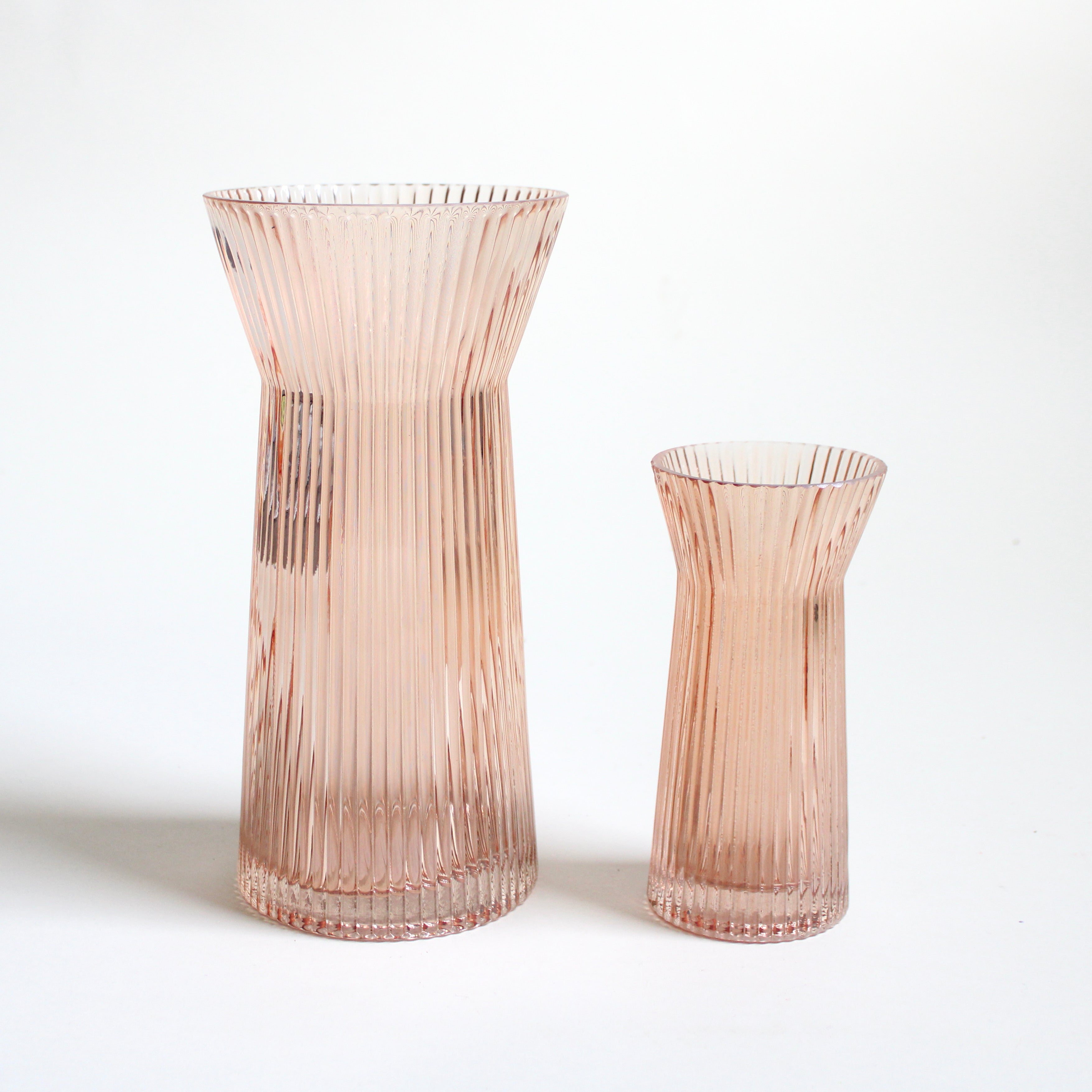 Showcase your dried flowers in a pink glass vessel designed to complement a variety of home decor styles. Its versatile shape makes it a timeless addition to any space.