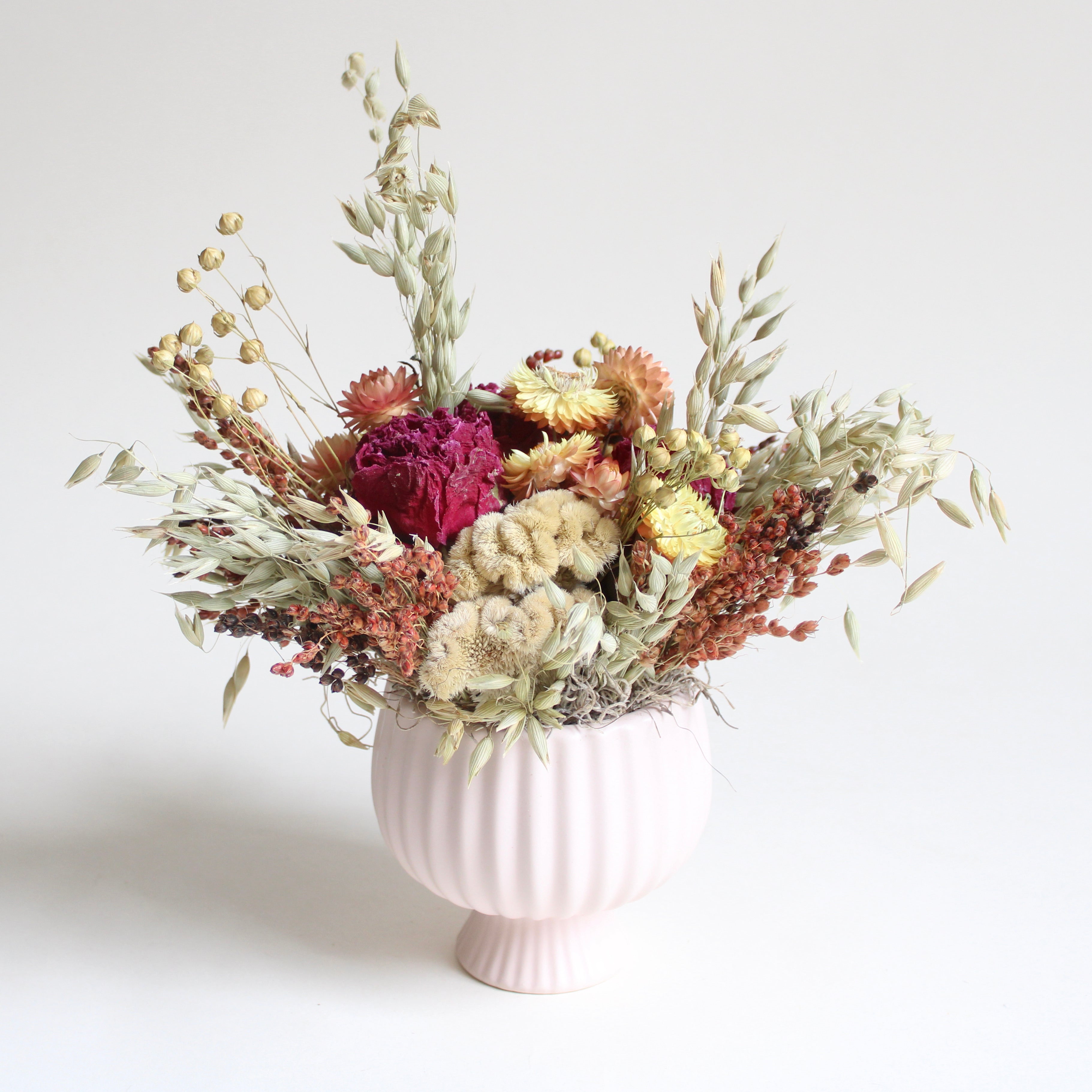 The perfect starting point for your next dried flower arrangement. Once you’ve chosen your blooms, this dreamy pale pink compote is ready to be filled—an ideal vessel to showcase your floral vision.