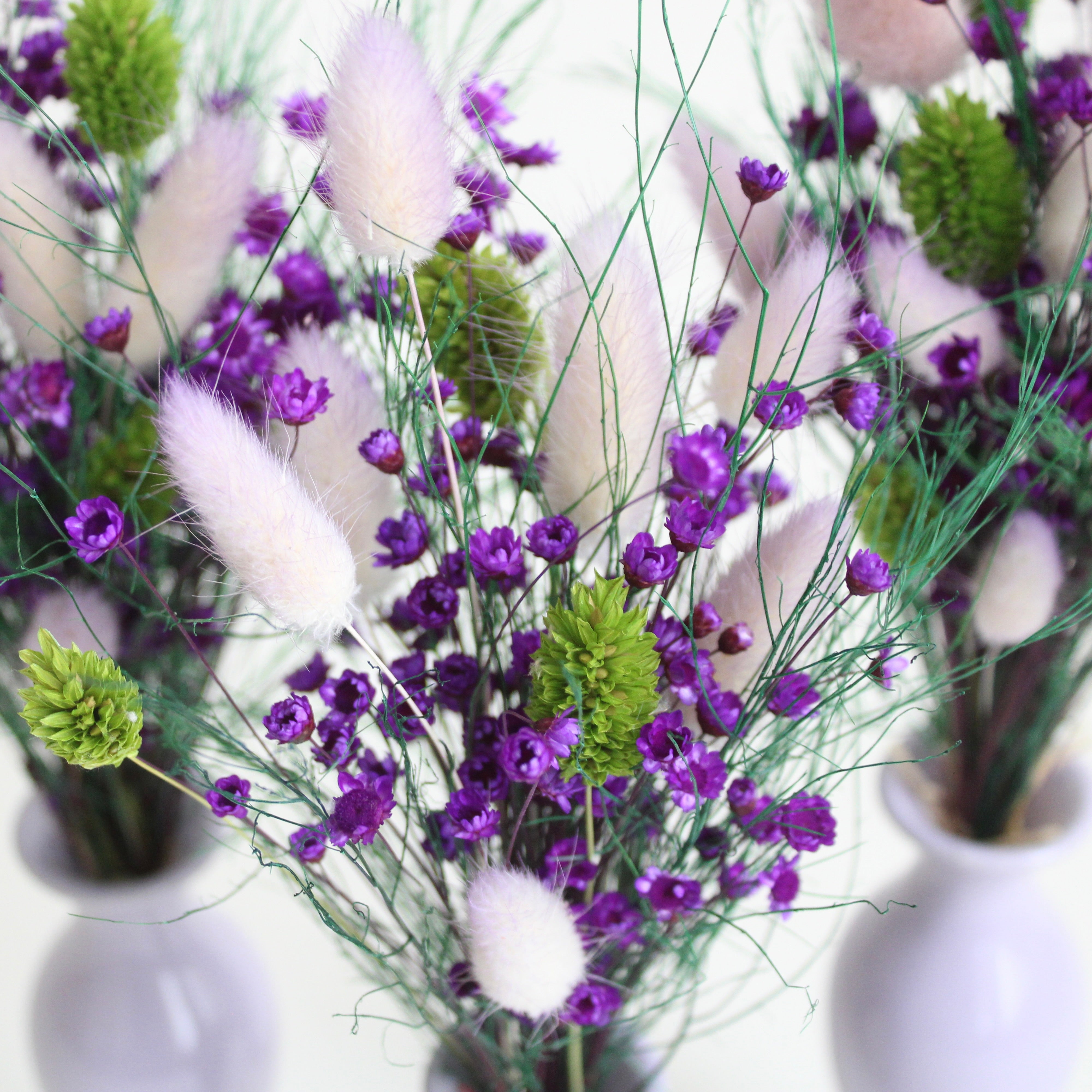 Dried and preserved flowers are mostly care free. The main factors that effect them are light or humidity. Direct sunlight can cause flowers to fade, and moisture can be absorbed and make certain flowers "wilt". If they end up getting dusty, we recommend canned air or a blow dryer on a low cool setting.